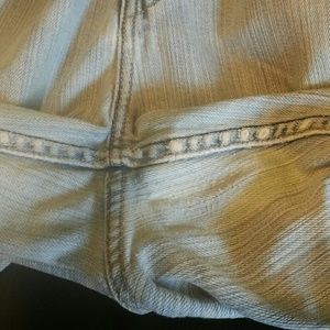 Levi light blue .low rise boot cut 14 M little wear on inside seam area has a small spot on upper leg not to noticeable so not perfect but still has good wear in them