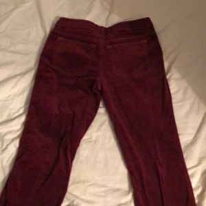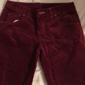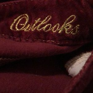 Cute very soft feels like suede maroon pants has a sight flare leg..these have been in my closet for a long time bought at outlooks store years ago but they have no rips stain or holes