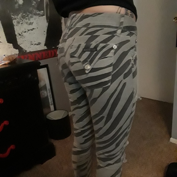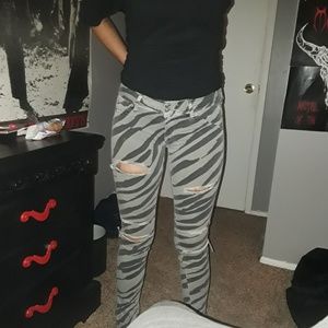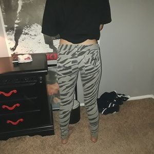 Grey with black zebra print, pretty much brand new only worn once.