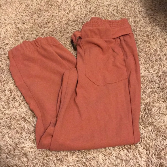 Mauve colored joggers with belt very stretchy material