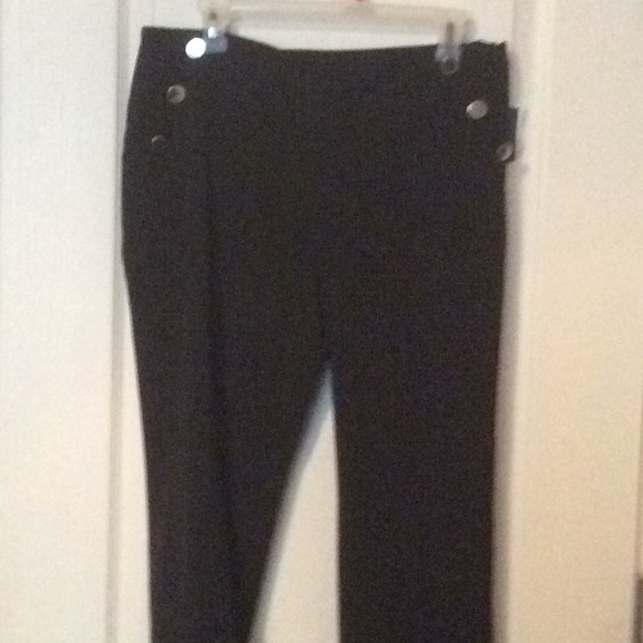 Black poly cotton dress pants with silver sailor buttons on the side. Side zipper and side pockets. New with tags!