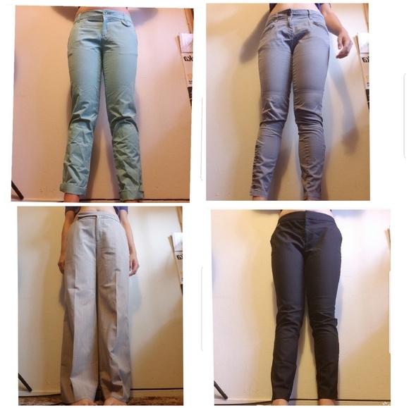 4 different kinds of pants for 1 price! great for work or casual days. Very good condition and the green one still has tag on it.