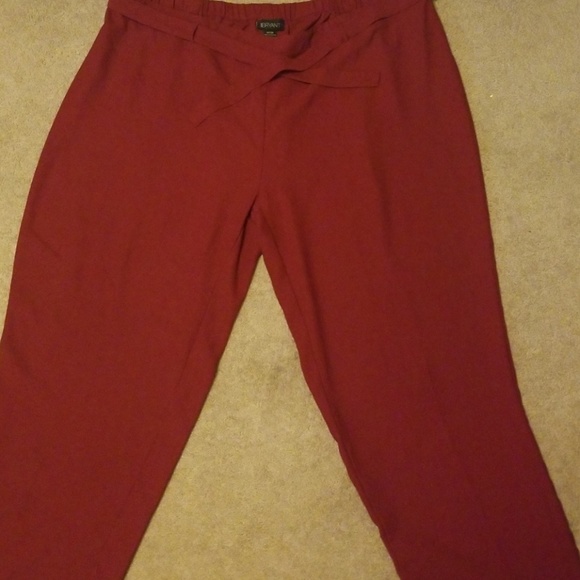 Size 26/28 wine colored dress pants with elastic waist and belt