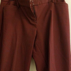 Black and red dress pants.
