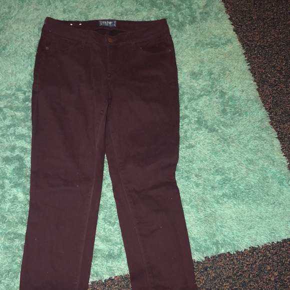 Old navy, plum colored pants, somewhat like jeans but not denim, skinny leg