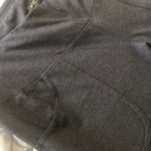 Lightweight fitted pants with pockets. Stretch band. A light soft blend of fabric. Doesn’t wrinkle so great for travel. Not too light that you couldn’t wear them in cool climates. Probably would be too hot in 100 Degree weather. Soft and comfortable. Never been worn. * I lost weight and they are too big. Great for running errands or picking up the kids. Stylish. Bought in a high end boutique