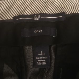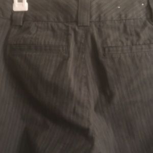 Dark grey pinstripe dress pant with 2 Pocket front and back with zipper and hook waist band in stretch fabric.