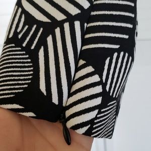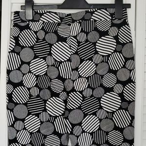 Super comfy techno twill ankle pant. Black with white circle print. Zipper detail on side of pant leg - can be worn open on closed. Sample has been lightly worn with very light wear/pilling on inner thigh.