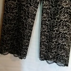 Polyrayon lined. Black and silver grey lace overlay. Side zipper palazo sweet