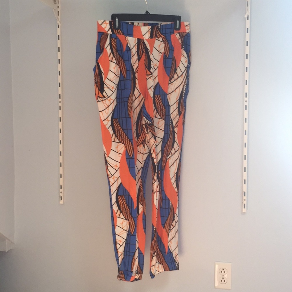 Fun and funky pants. Fit nicely on, spacious around thoughts and a nice taper to the ankle.