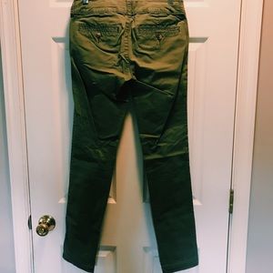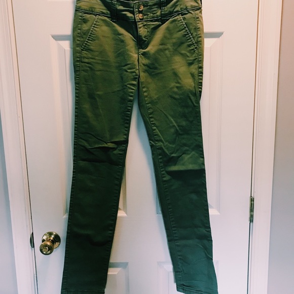 Green pants with two buttons.