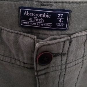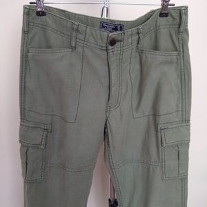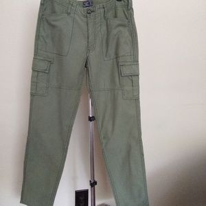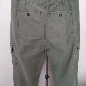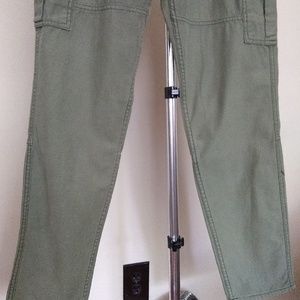 Olive green cargo/utility pants with pockets in the back, front and on the sides. Lightweight, 100% cotton. Slim boyfriend. Smoke/pet free home.