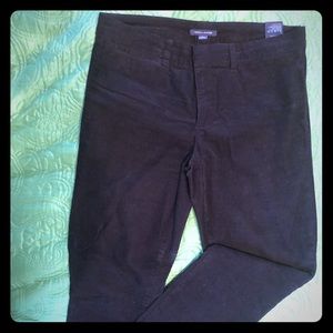 Black corduroy pants with front small pocket and back slit pockets.