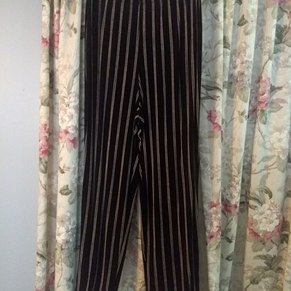 Wide leg black with white stripe. Elastic waist. Sizes xl and 1x available. Very comfortable. Great for work or evening.