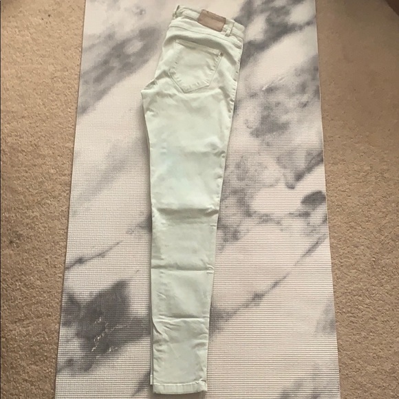 Light mint jeans with side zipper detail at the ankles. Very soft material (97% cotton and 3% elastane)