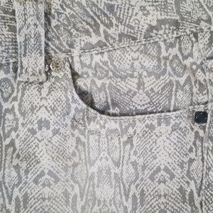 Animal print grey pants with a few rhinestones on front and back pckets 98% cotton and 2% spandex