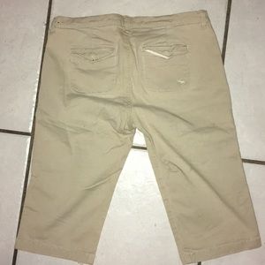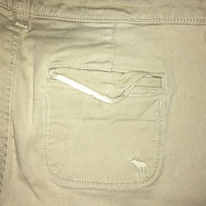 Abercrombie and Fitch Khaki pants that fall right above the knee, I’m 5”1 and they hit right at my knee caps, soft comfortable material, great for everyday wear, back pockets make the caboose very flattering! 😉 NWOT, only tried on but never actually worn, great condition