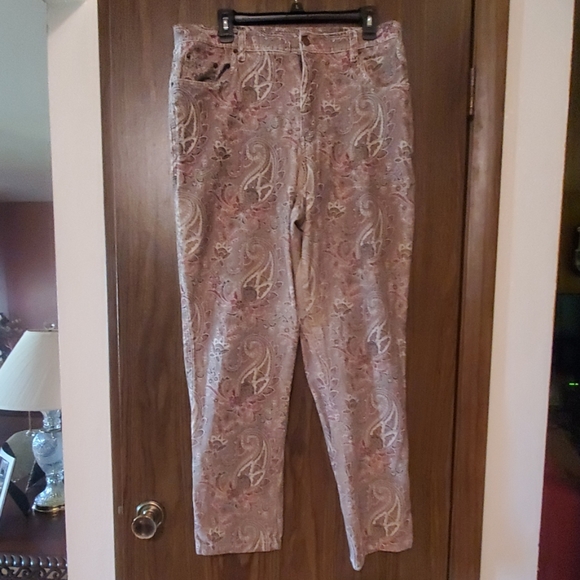 Paisley Corduroy pants, olive colored with hints of burgundy