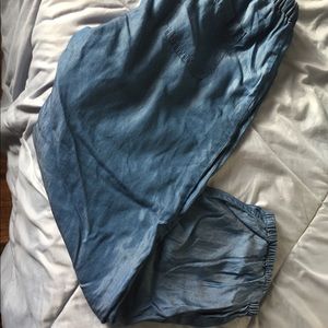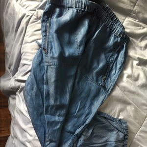 Stylish, pockets, drawstring, sinched ankles, Capri length, thin and soft material.