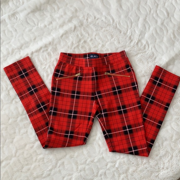 Red and Black Checkered Pointe Knit Jeggings - Faux Pockets - NWT