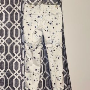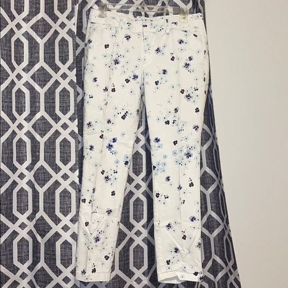 White and purple/navy blue flower pants