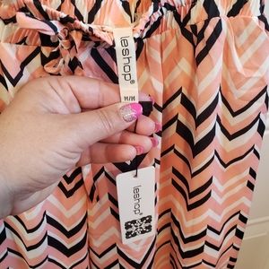 Blue, white & pink patterned LeShop wide leg dress pants NWT. Double lining inside.