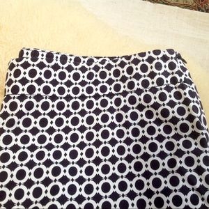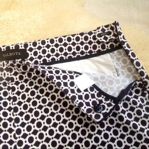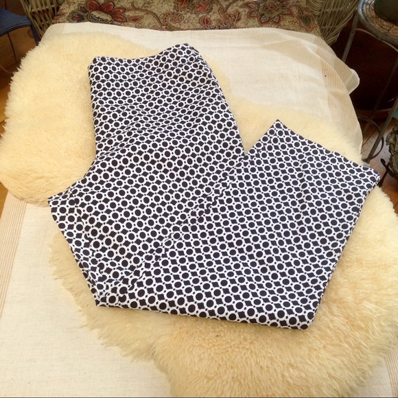 NWOT, cropped pant with side hidden zipper and inside button closure. Great black and white pattern, cotton and spandex for a comfortable fit and washable!!