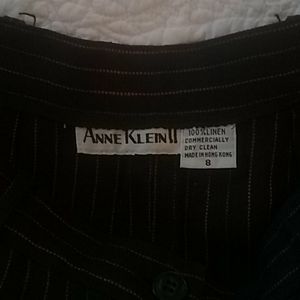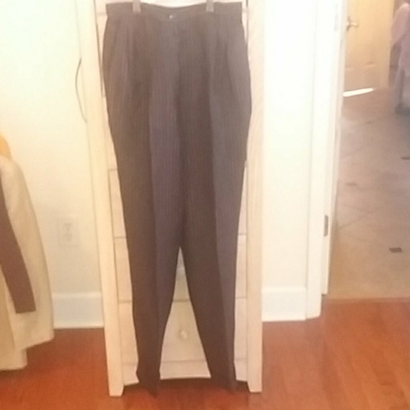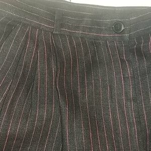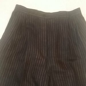 100% linen black and red pinstriped pants..button and zipper closing. Side pockets cuffed legs