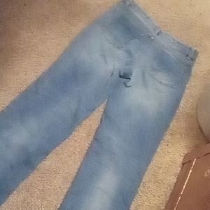 They are jeans, they have rips in the front , they are comfortable and soft, they also have a big angle size, you can also adjust them to be tighter around the waist or looser !