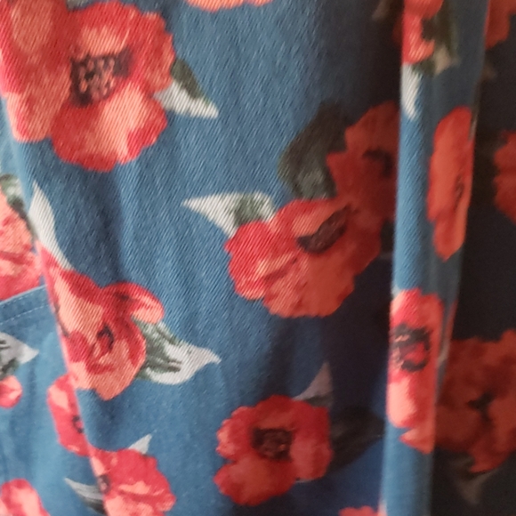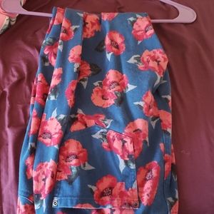 Floral skinny stretchy blue leggings material with back pockets