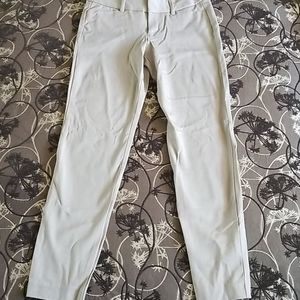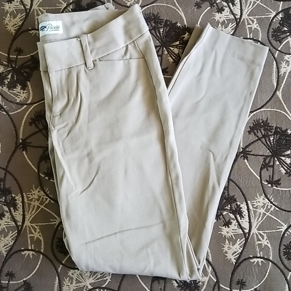 Beige, skinny, stretchy pants. Backside pockets are just for show.