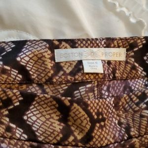 Silky leopard carries. Dressy with hues of purple, pink and brown. Beautiful! Nwot. Bought them recently and just too tight on me... snatch ' em up! Come to ankle. I am 5'6.
