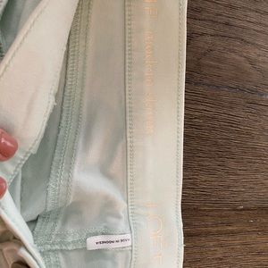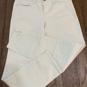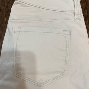 Pale blueish green lightweight pant. Has a nice stretch but still holds form. Loved these pants but had a baby and outgrew then. No flaws, smoke free pet free.