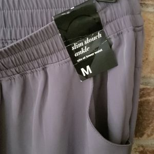 Gray slim slouch ankle calf pants