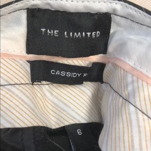Pants with white pinstripes. Accented with 3 buttons in the front pocket area. The Limited, Cassidy Fit