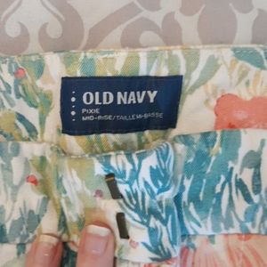 Flower pants with 2 pockets in the front and 2 fake pockets in the back. The pants have hooks to button it together. In great condition
