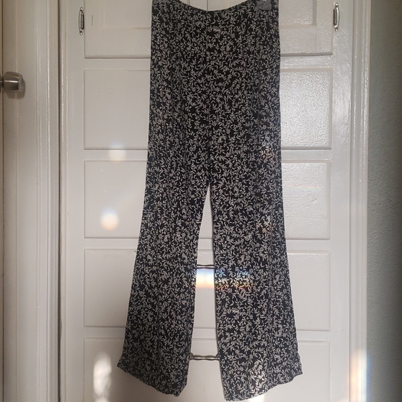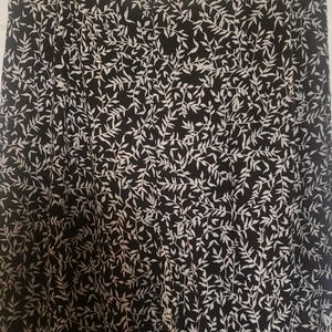 New loose pants, thin material. Its a size small but runs a bit smaller, I'm seems like an xs from the waist. Also my height is 5'5 and it fits up to my ankles.
