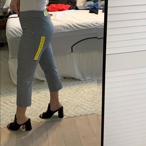 Grey and whit pin stripped cropped pants. Never worn still has tags