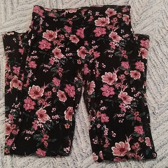 Super cute super comfy flowered prints flared out bottom stretch pants Charlotte Russe size medium great for work or casual comes from pet friendly and smoke friendly home