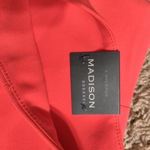 Red flair pants with slit from the knee down