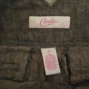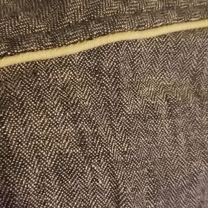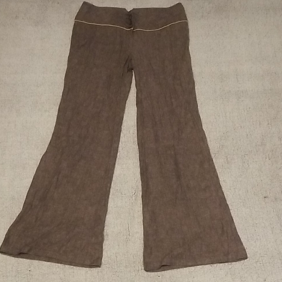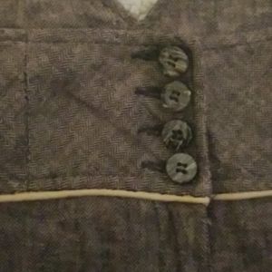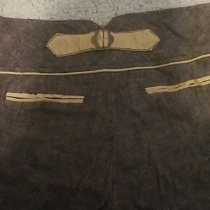 Brown/black, flare leg, stretch, button closure, faux back pockets