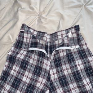These are thin but cute pants. They have a zipper in the back. I would not describe them as stretchy.