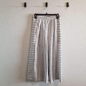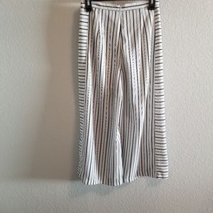Wide leg flowy pant in a super chic stripe. Zipper back closure. Shorts liner.