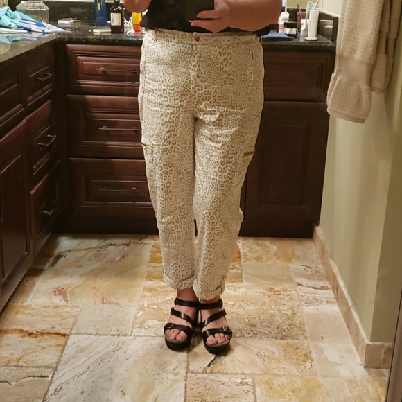 Leopard print cropped pants, soft with a lot of detail. Size 1.5 in Chico,s is a size 10. Never worn. No tags.