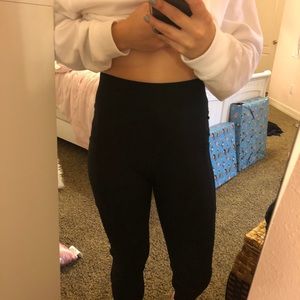 Black high wasted leggings with pockets and mesh sides with cross cross pattern size small