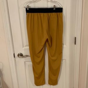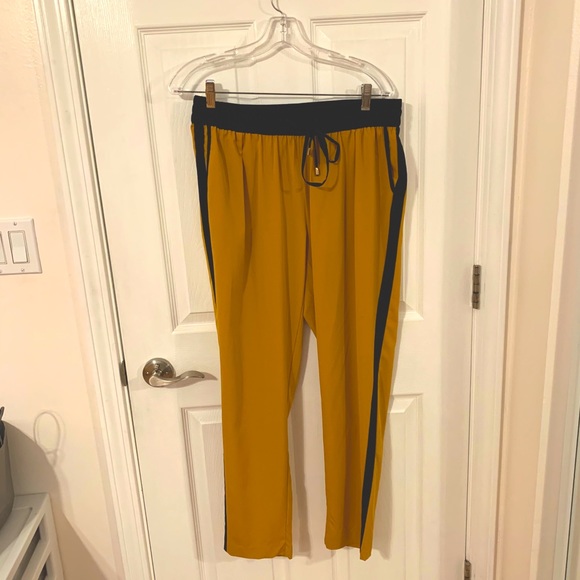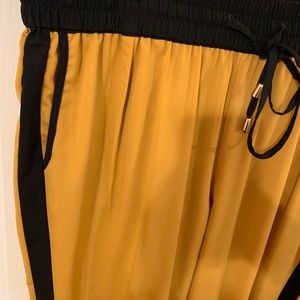 Baggy Pants. Size Large. Barely worn in excellent condition. 2 front pockets and a back pocket. Golden yellow color with black striped sides. Gold embellished tie front.