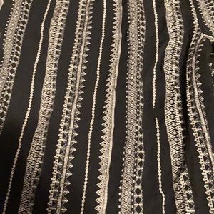 These pants are flowy with a fun pattern! They are a size XXL and have a non-adjustable elastic waistband. Some of the white looks slightly pink and I can’t tell if it’s my eyes or actual discoloring but it is quite faint if that is the case.