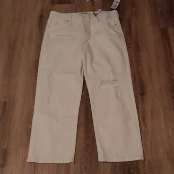 White jeans with rips in the front