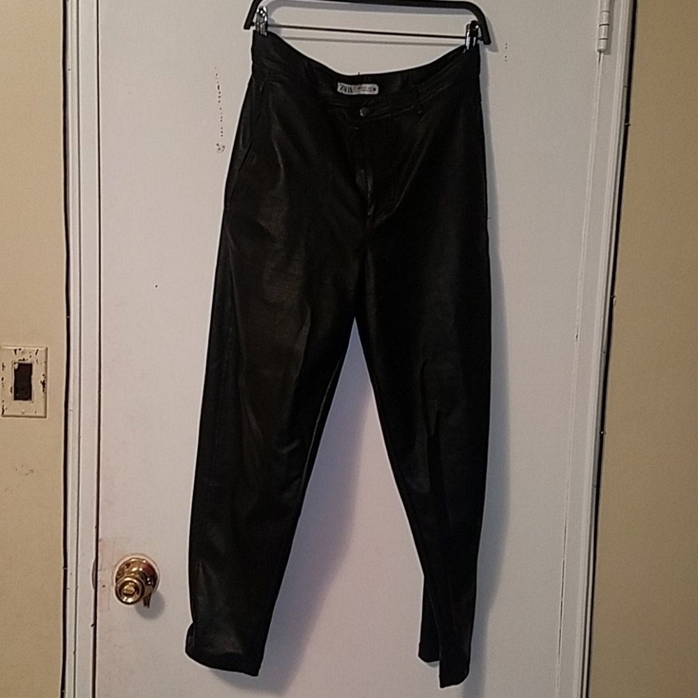 Faux leather pants with pants high waist