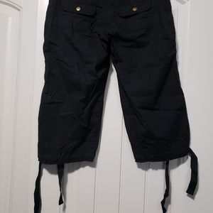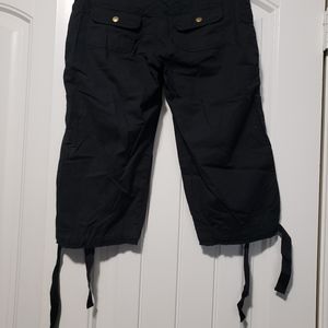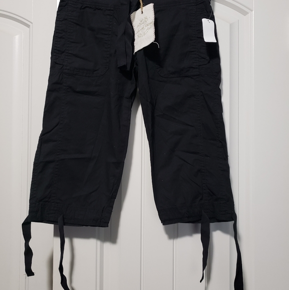 NWT Stretchy waist, can tie at the bottom, 2 front pockets, 2 back pockets that snap